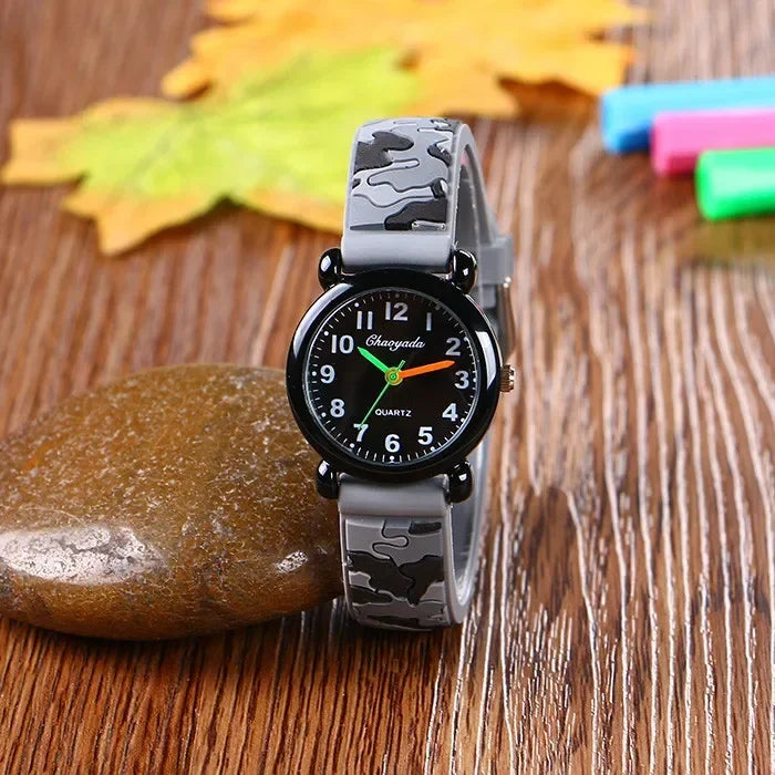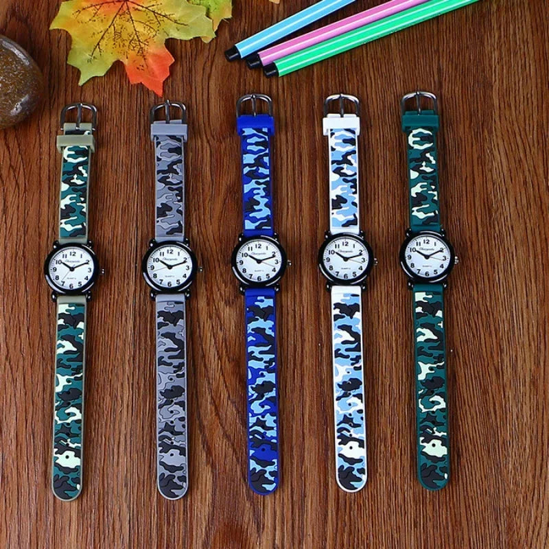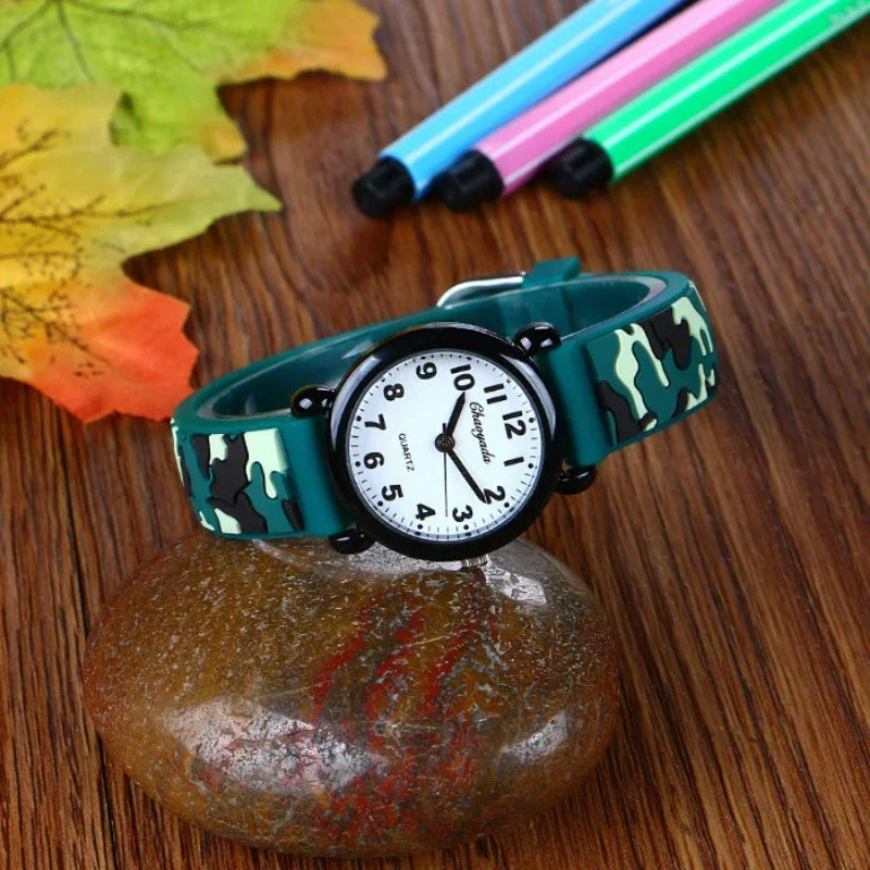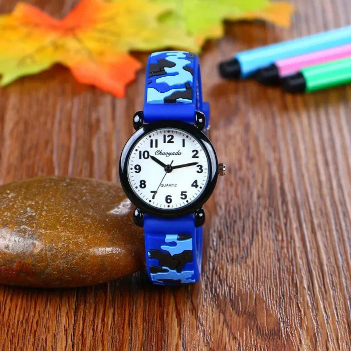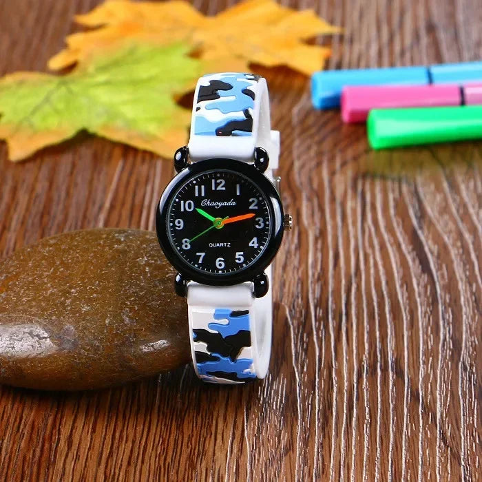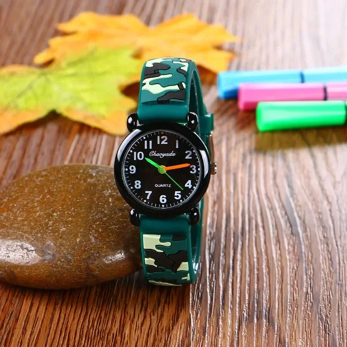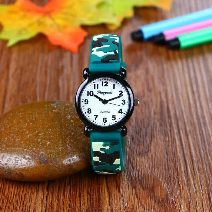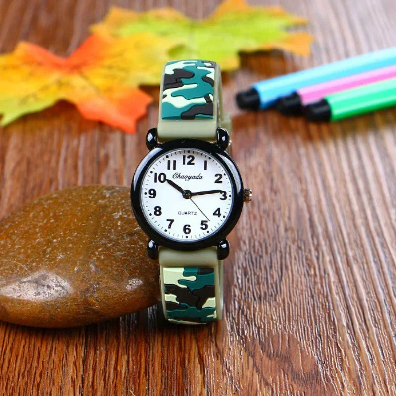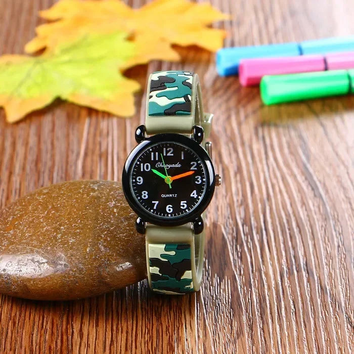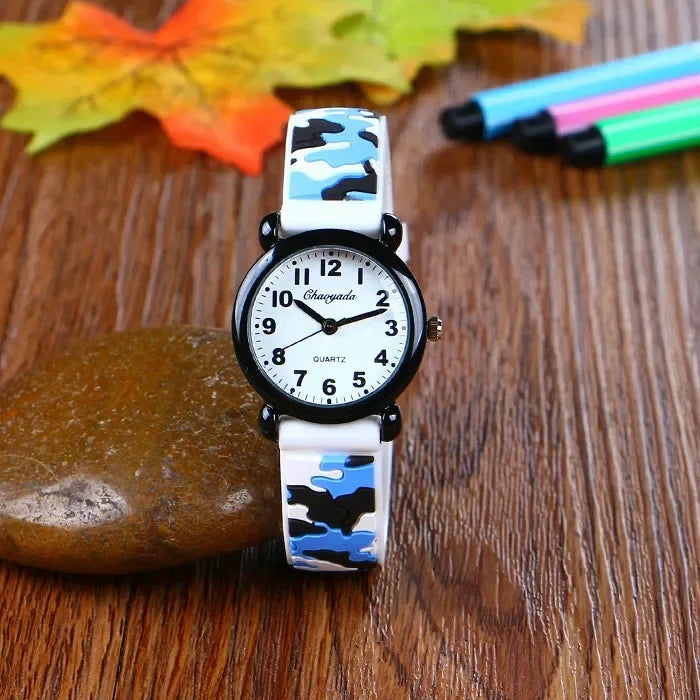 Camo Strap Cartoon Quartz Watch for Kids - Stylish and Fun