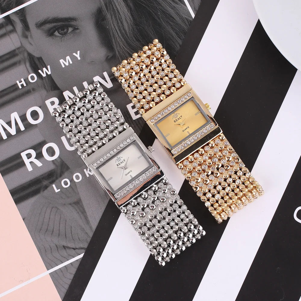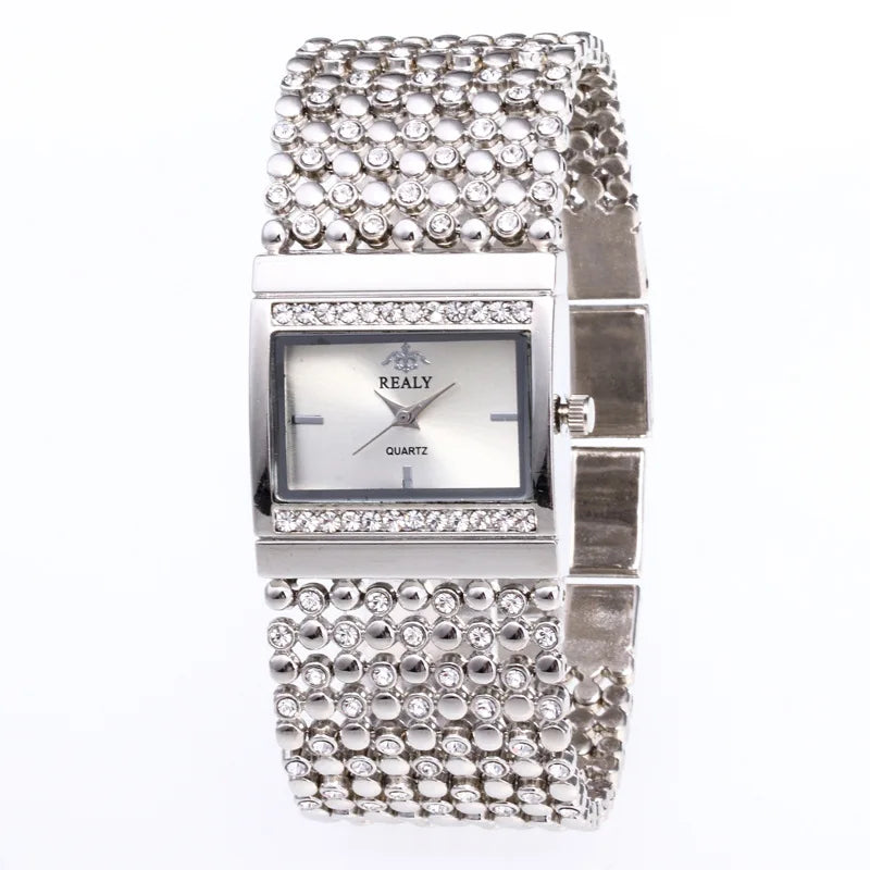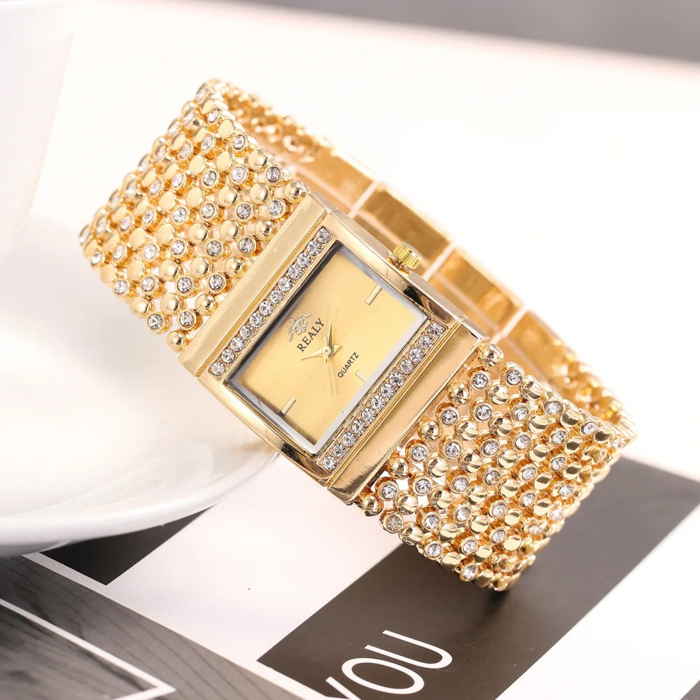 Luxury Casual Women's Square Full Diamond Bracelet Watch