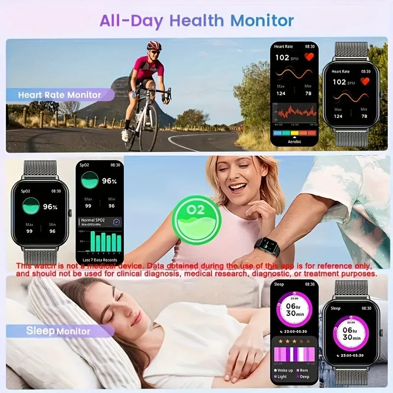 - Real-time heart rate, blood oxygen, sleep, and blood pressure monitoring